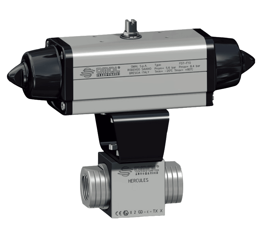 OMAL歐瑪爾氣動執(zhí)行器采用“撥叉式變扭矩”結構設計和多點導向密封系統,該技術不但實現了比齒輪齒條式執(zhí)行器更大的啟閉力矩,更有密封性能出色、平均耗氣量少、體積小、耐用性比齒輪齒條式執(zhí)行器大等特性,使控制單元具備了與眾多儀器儀表和控制系統相匹配的能力。
